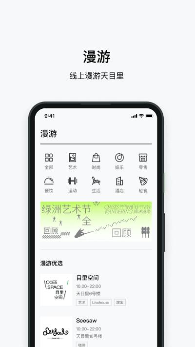 1.「漫游」美术馆、画廊、书店、私影、户外放映、Livehouse、时尚、酒店....在这里发掘美好;